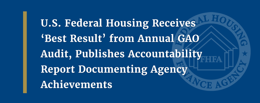 As today’s report explains, “An unmodified opinion with no finding of material weaknesses or unacceptable risks is the best result of any audit,” and for the seventeenth consecutive year, the Agency received an unmodified audit opinion on its financial statements. GAO performs an independent audit of the Agency’s financial statements in accordance with the Housing and Economic Recovery Act of 2008.